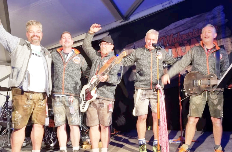 Und wie schon bei den seit dem Jahre 2013 stattfindenden "Ras'n-Festen", steppte am Samstagabend bereits früh der weiß-blaue Bär. Ein Garant für die "bärige Stimmung" waren die fünf "Wolpertinger Buam". Mit einer zünftigen, wilden, urigen, fünfstündigen Mega-Power-Show mit fetzigem Programm vom Alpenrock bis zum gestandenen Ländler, von Polka bis Punk, sorgten die Bandmitglieder rund um Frontmann "Hoty" Ralf Neumann für eine tolle Stimmung unter den Gästen. Die älteren Flachter durften sich erinnern: Vor genau 20 Jahren war "Hoty" zum letzten Mal in Flacht zu Gast. Damals noch als Mitglied der "Hot Shots". Und er zeigte am Samstag, dass er nichts verlernt hatte. Von der ersten Minute an konnten er und seine Mannen das Publikum mitreißen.