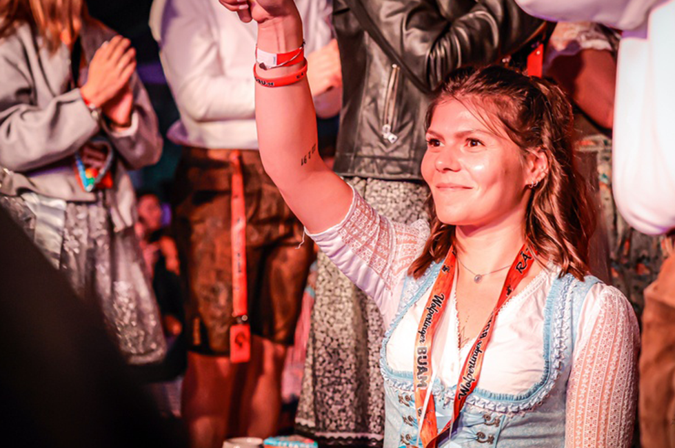 Die Fanreise-Gäste, die echten Helden des Abends, stürmen als Erste ins Festzelt und dürfen sich ihre Plätze ganz nach Herzenslust auswählen!